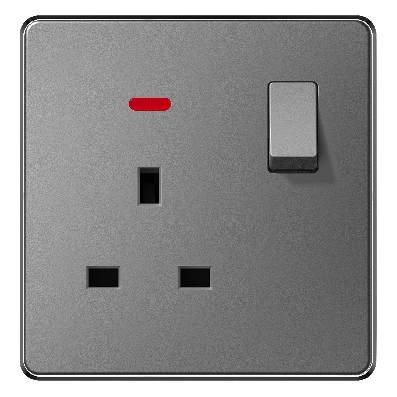 13A 1 GANG SWITCH + SOCKET WITH NEON - GRAY