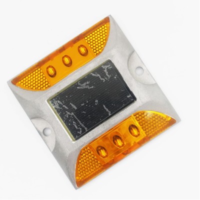 LED Solar Road Stud Light Marker Lighting Security Warning Lamp with 6 LED Yellow